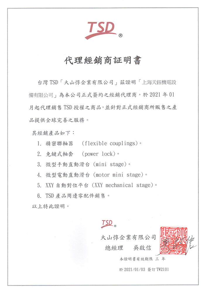 母公司为天隶企业股份有限公司于1994 年台北成立,并于2001年10月设立上海运豪国际贸易有限公司,并于同年取得”NSK”代理权;2013年10月更名为上海天钰机电设备有限公司。