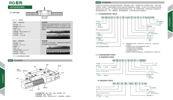 RG系列以滚柱型滚动体取代了钢珠,为实现超高刚性与超重负荷能力而设计;透过滚动体与滑轨与滑块的线接触方式,让滚动体在承受高负荷时仅仅形成微量的弹性变形,更藉由45度的接触角度的设计,让整体直线导轨达到四方向等高刚性、等高负荷能力的特性表现。透过超高刚性的实现,可大幅提升加工精度,达到高精度的要求;由于超重负荷的特性,进而延长直线导轨的使用寿命。